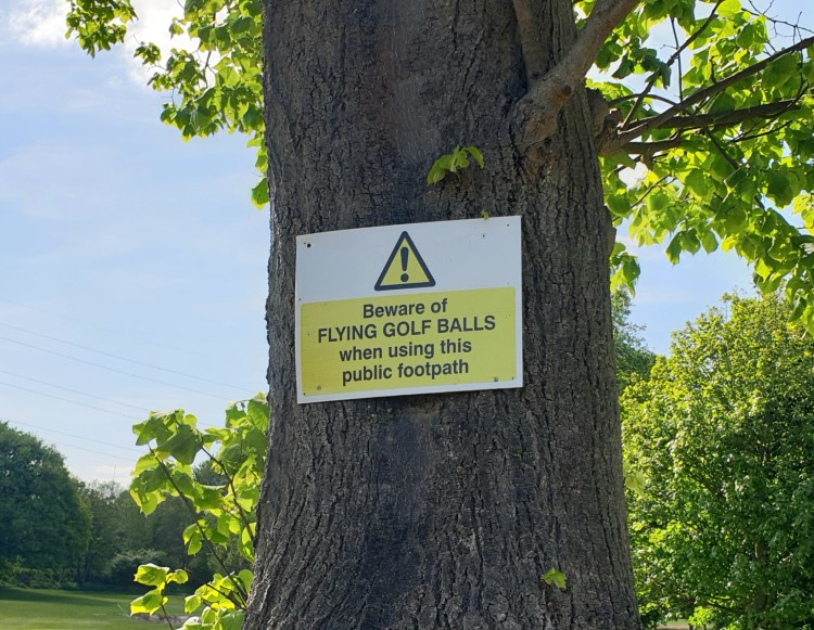 It’s quite perilous strolling too close to one of the neighbourhood golf courses. My soft titfer definitely wouldn’t protect the bonce, I confidently predicted.