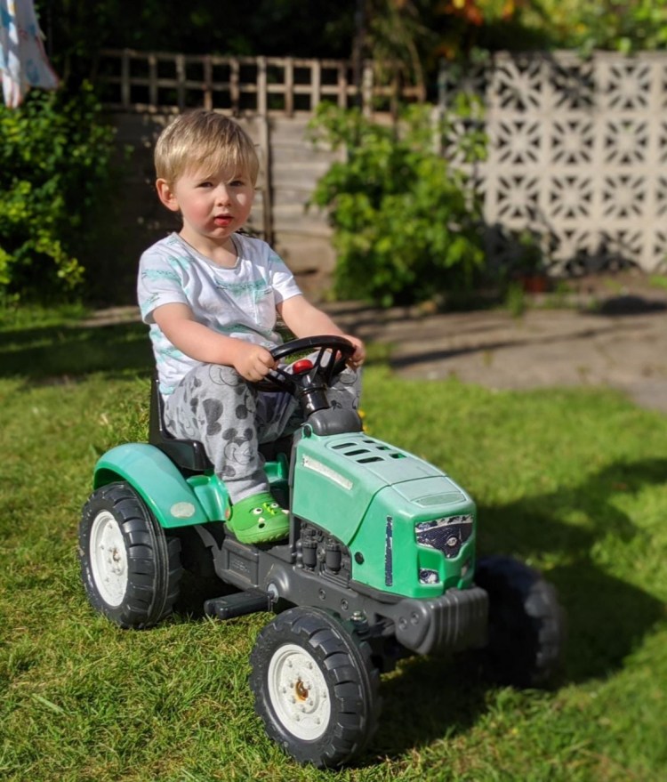 There may be a dearth of fruit pickers in the UK this year, so William’s been learning to drive a tractor in case his services are required.
