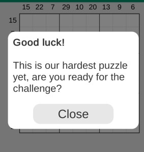 Another kind of puzzle that I tried to solve in Malaysian newspapers last year is Slitherlink. I’d never come across such a thing before, and I never got anywhere near completing one. You have to join the dots on a diagram, the numbers tell you how many sides of the square have a line segment. The line has to be one continuous loop. I’ve found an app now for this kind of puzzle too. And I solved one. It took far too long and I’m sure I will get faster, but I’m very proud of my achievement. It was much, much smaller than those in Malaysian newspapers! 12-year old me punched the sky.