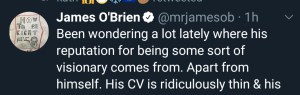 What? You’re wondering how I can just briefly mention David Bowie at Glastonbury and not dwell a little longer on the subject? At the time of writing, I have watched this programme twice. It’s the first time the full performance has been broadcast on normal TV. He enjoyed it, we fell in love with his bass player, Gail Ann Dorsey all over again, the band was all together.