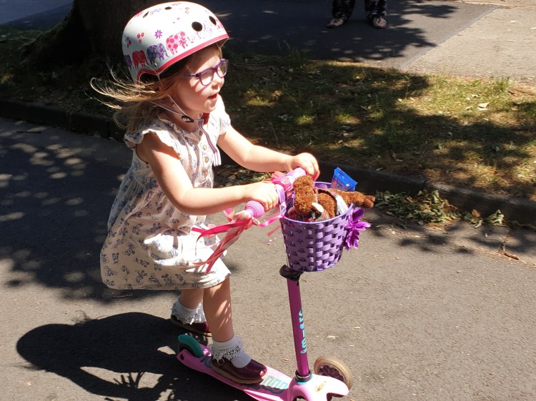 Mostly we kept a safe distance but I did step over the invisible boundary a couple of times by mistake, especially when Martha fell off the scooter. My instinct was to rush over to pick her up, but before I’d taken one step, she announced that she was alright.