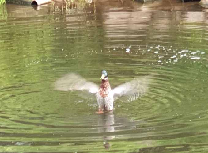 It had rained earlier in the day but we stayed dry mostly and the Sun came out again. Until the big black cloud appeared and it started precipitating again just as we arrived home. Good weather for ducks, though.