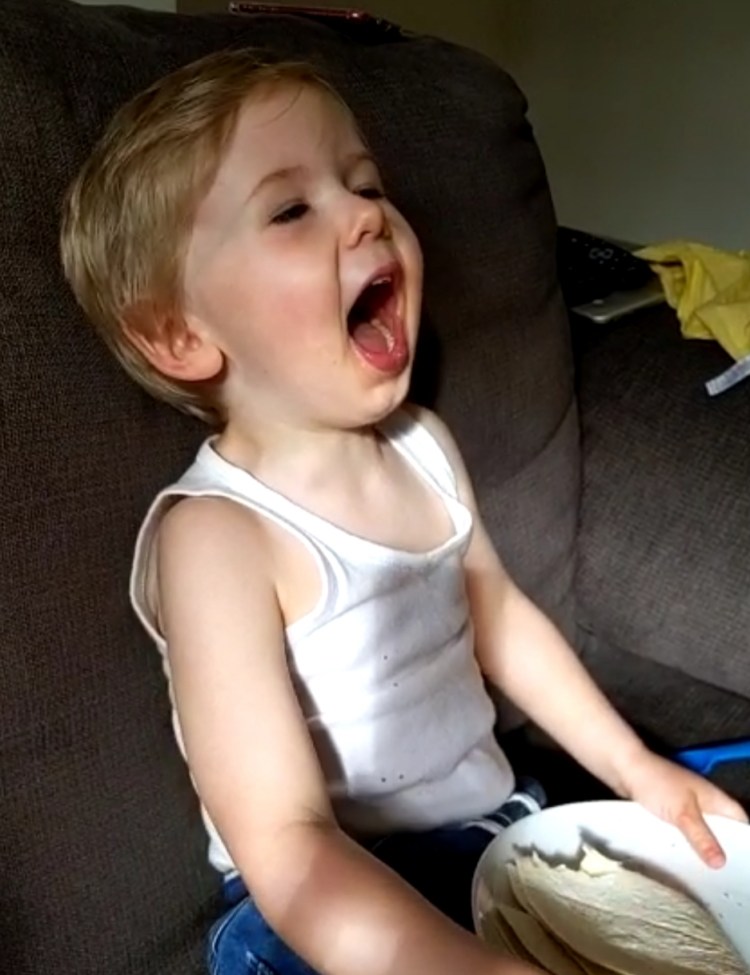 For some reason, the video won’t load or play here, but here’s William at home, laughing at a cartoon called Bing about feeding ducks that he finds hilarious. We miss his laugh in real life.