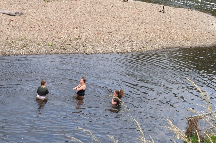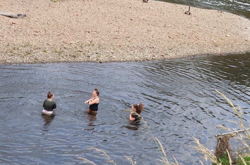 Three girls daring each other to get into the water which was absolutely freezing apparently. It looks deeper here than I’d realised, making me reconsider my plan one day to wade over to the gravel island.