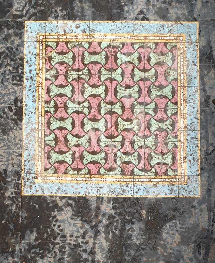 These tiles probably look very attractive on a dry, sunny day, but thery’re not as pretty covered in wet, muddy footprints.