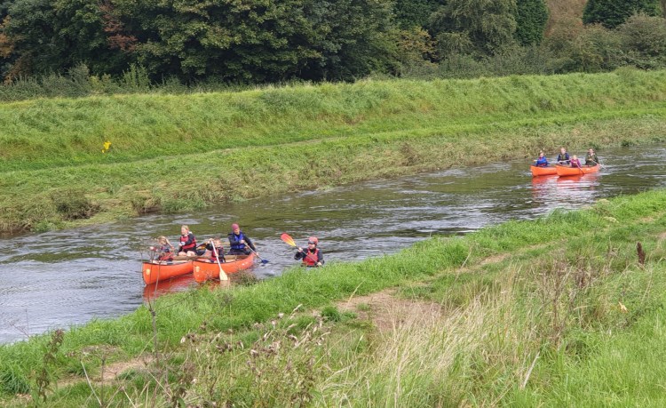 Back in Northenden this very morning, we did go for a walk locally. It was unexpectedly cold and we could tell from the puddles and the very high, fast-flowing river, it must have been raining a lot lately. You don’t say! The canoeists weren’t deterred though, but they had combined two vessels together for stability, as they drifted downstream: not a lot of paddling going on today, it really wasn’t necessary.