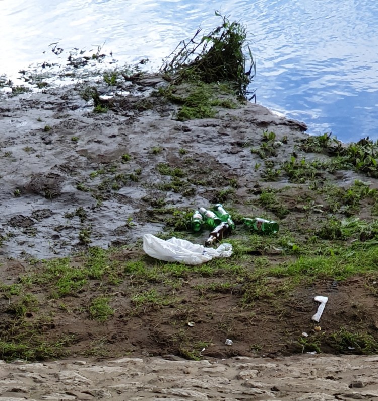 Presumably this gathering by the riverside was illegal, but even so, that’s no excuse for not taking your empties home.