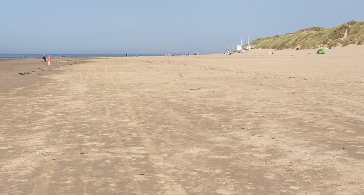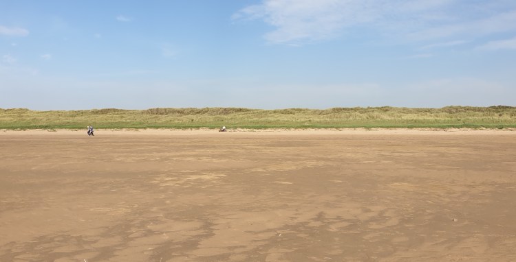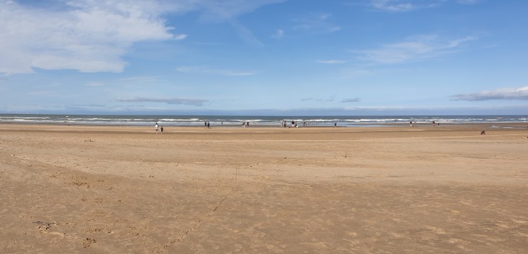 The car park was full, but the beach is huge, so although there were pockets of people, it was easy enough to find our own space. Luckily, we’d arrived early, because by the time we left, there was a very long queue of cars waiting to get into the car park. The final Sunday before the ‘Rule of 6’ restrictions kick in, maybe. Or just a Sunday.