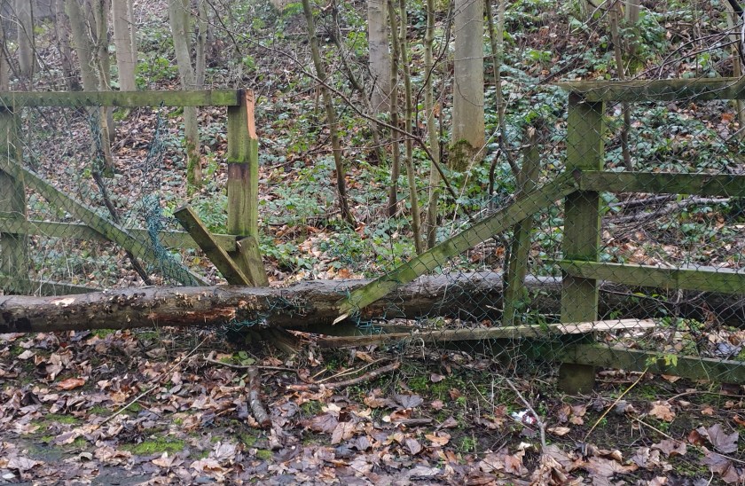 Every time we walk through the woods, I regret not bringing my tools. This fence has been broken for as long as I can remember, and I reckon I can fix it with a few nails and a couple of cable ties. Oops, I just remembered, I’ve passed on most of my tools. Oh well, it’s the thought that counts.