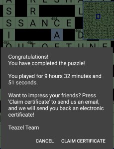 My achievement of the week was completing the biggest crossword I’ve ever attempted: 1284 clues. It was an app, with a few annoying adverts but good fun and quite challenging at times.
