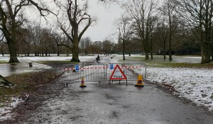 It was a good decision to wear my new wellington boots when I walked through Wythenshawe Park. The path was still flooded: in fact, half of its puddle was frozen too. The grass either side of the path was waterlogged to the point that one side resembled an ice rink. I was joined on this particular walk by Tina in Coventry. From a very safe distance, I hasten to add. Whatsapp was the means of communication.