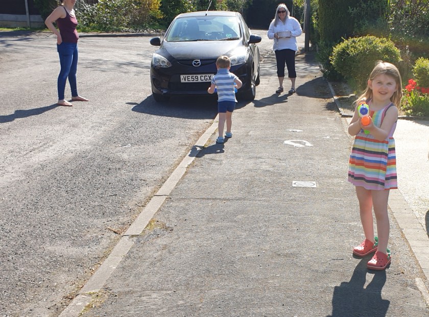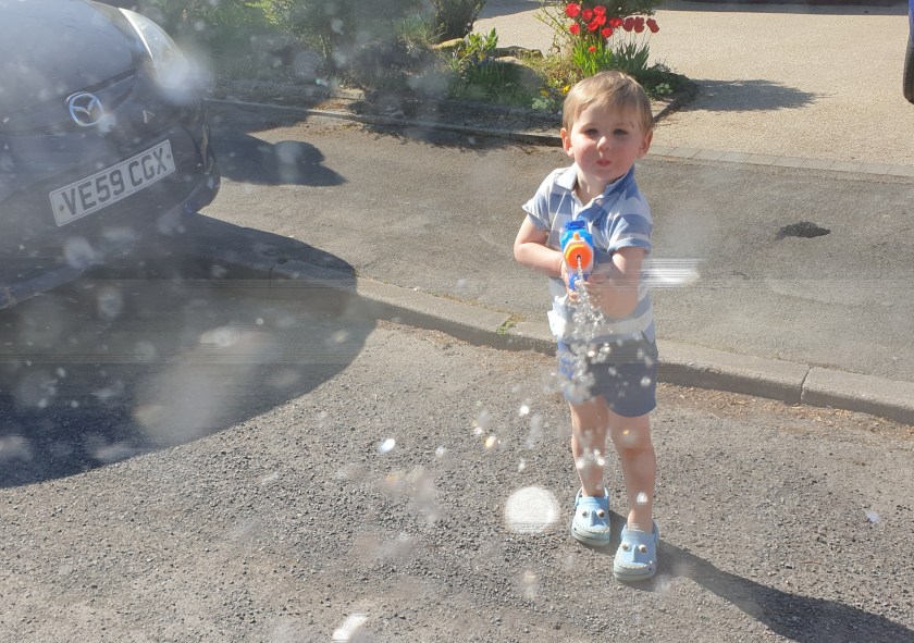Yes, of course I ran away down the road like the cowardly wimp I am,  but that didn’t stop them. No, I didn’t mind getting soaked, it was a warm day, and I was feeling quite buoyant from the jab.