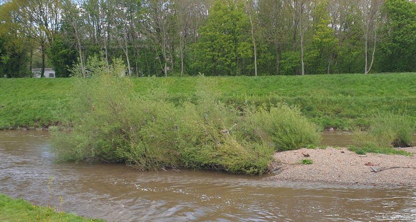 As Spring (sort of) makes progress, the leaves on the bushes on the island in the river are nicely hiding all the plastic rubbish that was caught up during the floods a few months ago. The heron has been a bit elusive this week, but he knows how to tease: I can just see him lurking behind the fence!