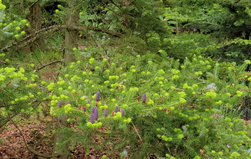 I wish I knew what this thing is, with its purple fircones. One day I’ll go back through this blog and insert all the proper names of plants and birds but don’t hold your breath.