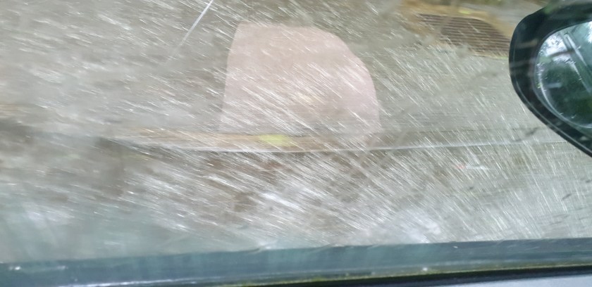 My waterproof anorak isn’t as waterproof as I thought, but this was its toughest test to date. Liesel’s umbrella did the job though. Two very wet people sat in the car for a few minutes before setting off home. It had been raining hard for maybe half an hour or so, but already, the roads were flooded. We drove through several puddles and would have drenched any passing pedestrians if we’d encountered any.