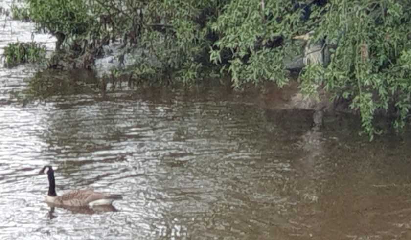 In between showers, we had a quick walk around Northenden. Unusually, the heron was on our side of the weir.