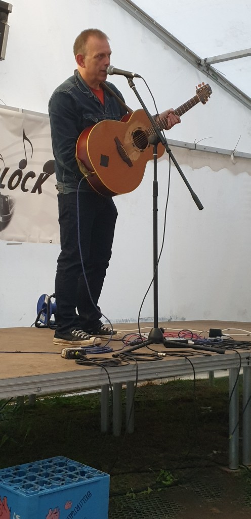 In the evening we went out. Out out. To a proper place for a proper live music event. Our first gig since before the first lockdown. We were in a marquee at The Kings Lock in Middlewich to see Tom Hingley. While there, I interviewed him for my radio show. He was very generous with his time, and I hope I can use some of it on the show. We were seated right by the canal, with running water, and a busy road just the other side, so I hope the background noise wasn’t too bad: all I had to record on was my phone. Still, what a top bloke.
