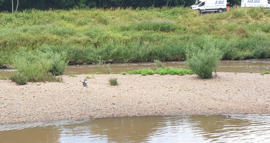 Liesel and I like mixing things up a bit, so we walked the other way along the river, towards Chorlton rather then towards Didsbury. Well, it makes a change. There were a few joggers and dog walkers as well, and on the other side of the river, a temporary encampment has been set up by the looks of it. If you need a new tyre for your car, there are plenty in the river here, easily seen when the water level is so low.