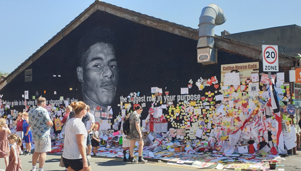We don’t know who the artist is, but it’s always a joy to come across a work of art when you least expect to. It’s definitely not a Banksy. Which is good, because this pillar supports a motorway, and it would be a real shame if someone were to cut a hole out in order to preserve the artwork, like they did with the hula-hoop girl in Nottingham. Well, such are the thoughts of insomniac me when it’s hot and sticky indoors. I’ve had some pretty vivid dreams too during the recent heatwave.