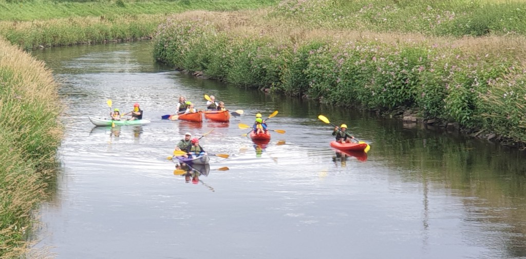 We more or less kept up with them as we approached the weir in Northenden, but we missed their descent into the torrents. They had a short rest on the island before continuing their journey, but we realised we don’t know where the next possible stopping point is.