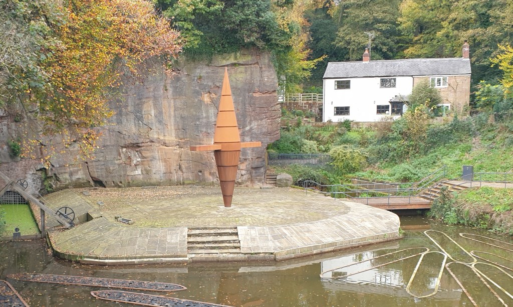 We followed directions to Worsley Delph, not knowing what such a thing was. It’s the entrance to the Duke of Bridgewater’s underground mines, and marked by a strange object which probably had some use in the past.