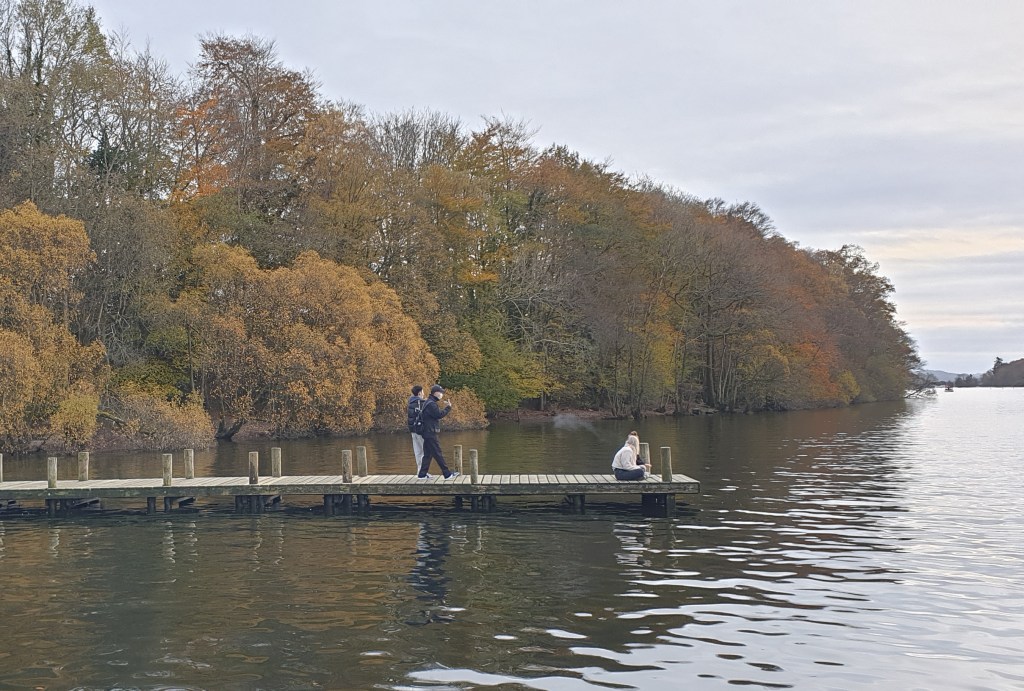 I usually stay for a coffee with this group after the walk, but on this occasion, I didn’t: Liesel and I had plans to visit Windermere, about 1½ hours north. Only 85 miles north but much, much closer to the north pole if the temperature difference is anything to go by. I was excited to see the first Christmas tree of the year, outside the local branch of Lakeland. Actually, it’s also the headquarters of the company. Liesel bought a couple of small items while I inspected the facilities.