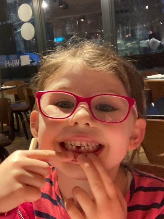 At last, after having had it wobbled in front of our very faces for the last several weeks, Martha’s first tooth has fallen out.