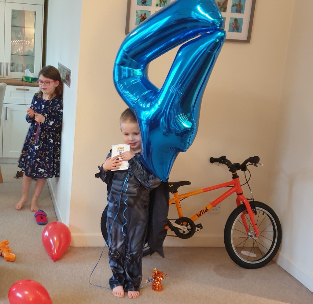 Bike, balloon and Batman birthday boy