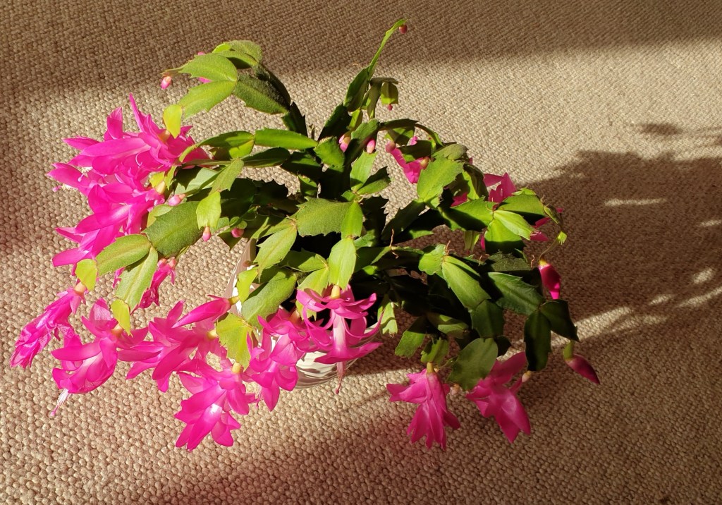 For the second year in a row, our Christmas cactus has leapt into bloom a few weeks early, brightening the kitchen with a wonderful display of almost fluorescent pink flowers.
