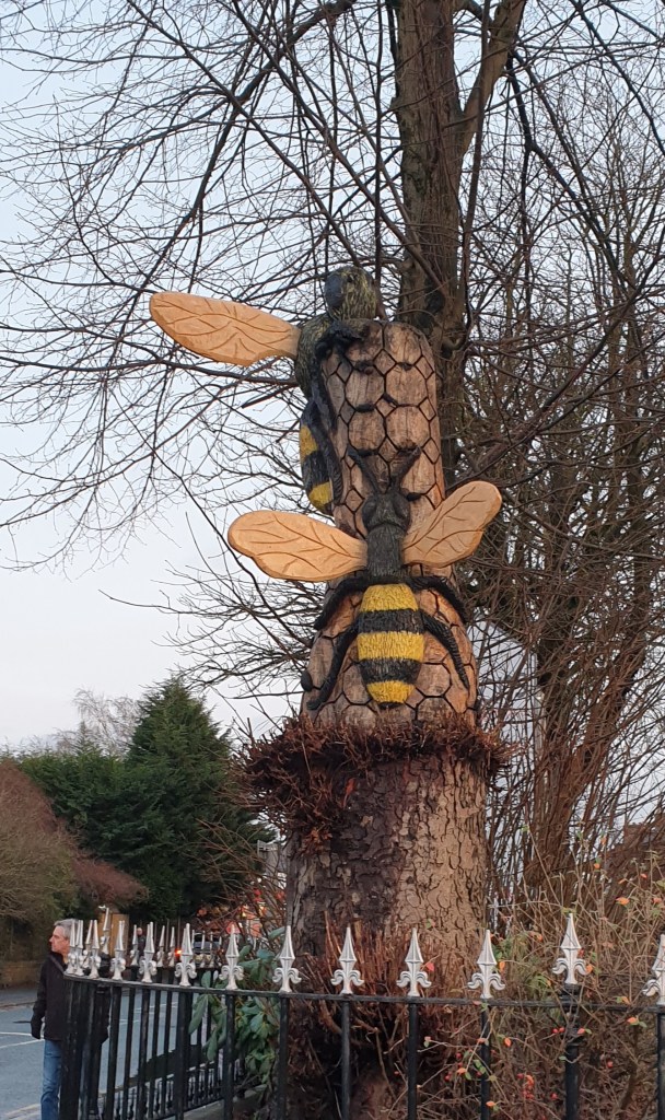 Two of them lovingly carved from an old tree. And by coincidence, the same bus driver took me back to Northenden.