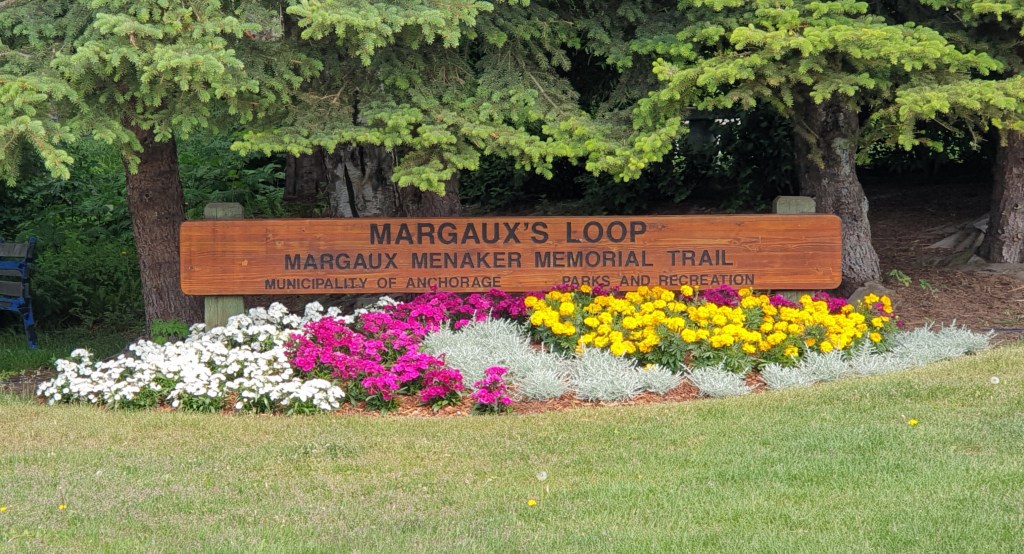 Jyoti and I did go for a nice long hike the next day. She took me to Kincaid Park and we followed one of the trails. Well, maybe: we might have missed a turn somewhere, but it was still a very pleasant walk.