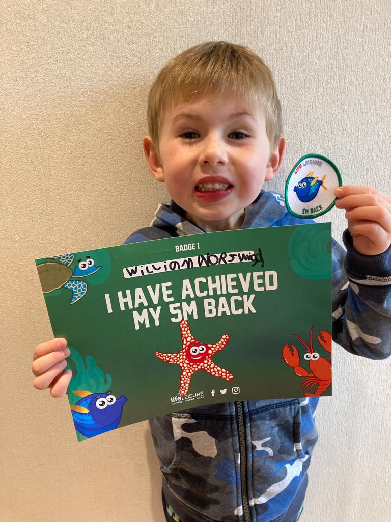 Well done William! He earned his 5m backstroke swimming badge this week, and that must qualify as the highlight of the week.