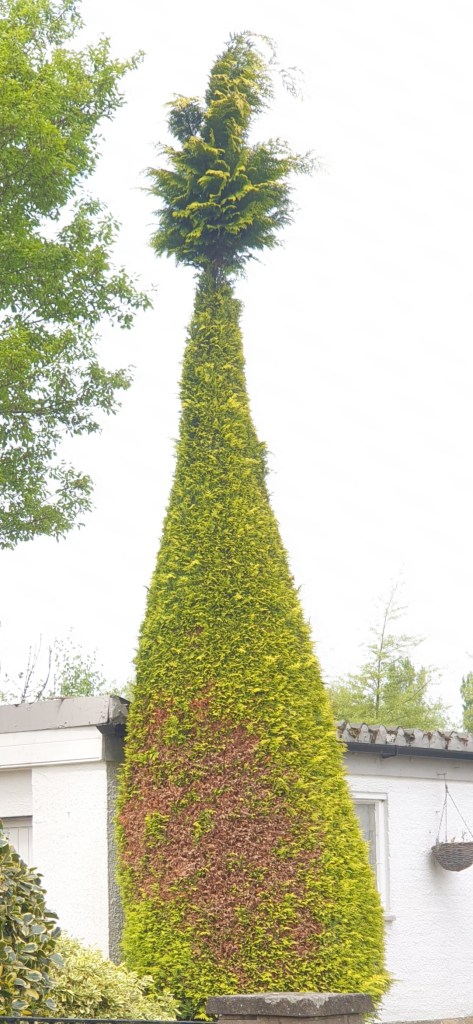 A wannabe topiarist had a good go at this shrub, but they need a slightly taller ladder, methinks.