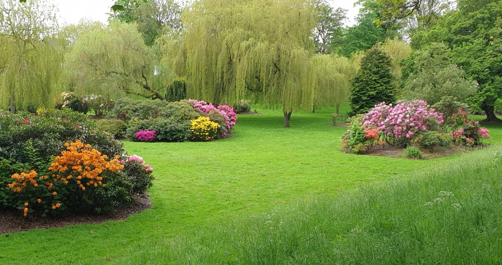 I don’t know if Liesel was surprised or not, but I got up in time to have breakfast and then walk with her to Didsbury, for her weekly coffee and chat with the ladies of the WI. We had a pleasant walk by the river to Didsbury. Some of the grass on the bank has been cut back, but there was a healthy barrier between the path and the river. That didn’t prevent all the dogs from jumping in the water, though.