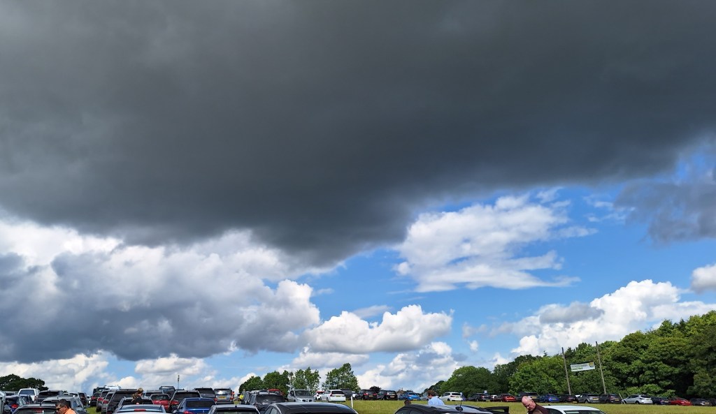 It’s a two-day event and we were there on the second day. The traffic queue to get into the car park was ridiculously long. But we got there in the end. On disembarking from the car and embarking on the long hike to the show site itself, we were greeted by the biggest, blackest cloud ever.
