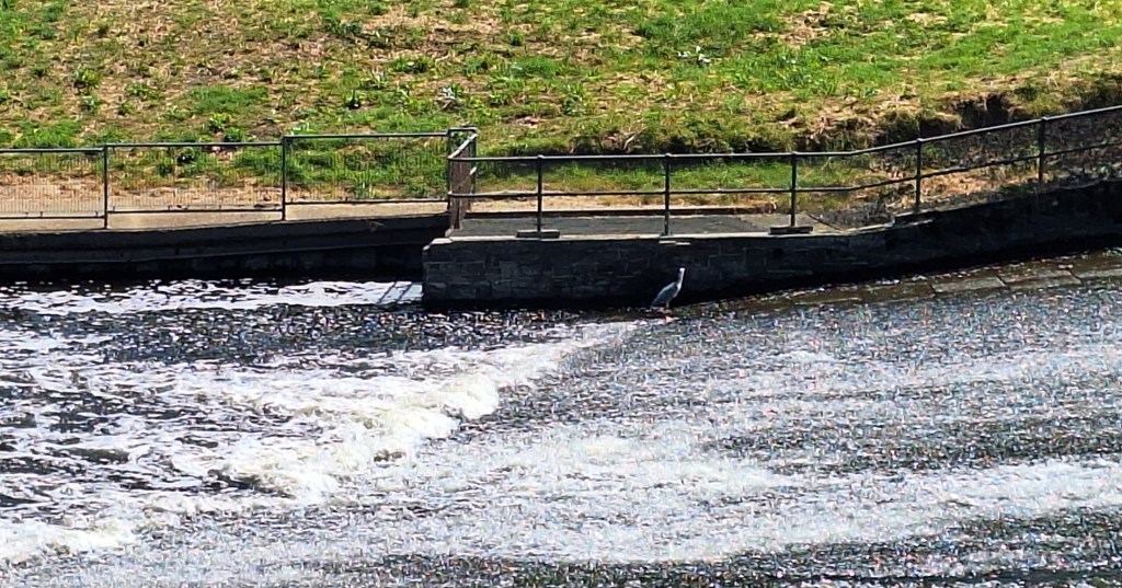 For the first time in many weeks, Liesel and I joined the Wednesday walk. It was a hot day for a walk by the river, with little shade. Phew what a scorcher. But the heron was standing in his default spot on the weir, so that was a bonus.