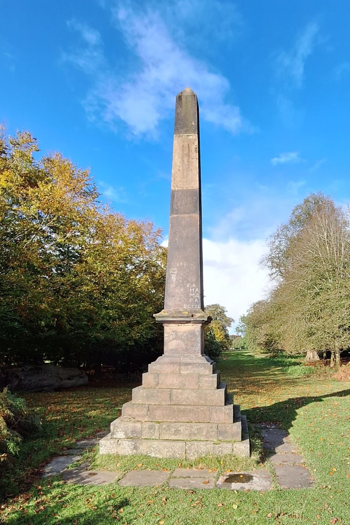 One of the original occupants, the Earl of Warrington maybe, based the design of the grounds on the gardens at Versailles. Well, I can see that. Not all of the paths have been paved though. One, Langham Grove, leads to an obelisk which was erected in 1714 by the 2nd Earl of Warrington in memory of his mother.