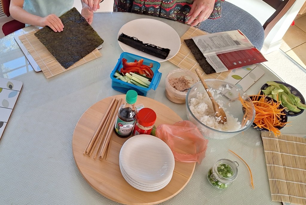 It was our turn to look after the children this week one day, after school. The craft activity and food preparation were combined on this occasion. We asked Martha what she wanted for supper and she replied ‘sushi’. So, for the first time ever, Martha, William and I made sushi. It was fiddly but fun and I’m sure next time, we’ll handle the sticky rice better.