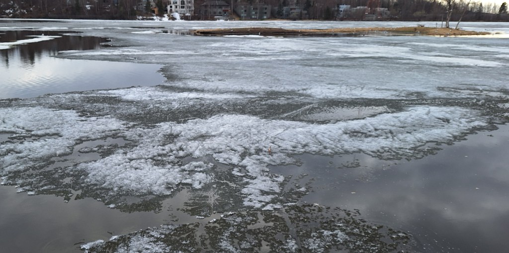 In the depths of Winter, the ice is so solid, it is a great venue for ice skaters. They even use a Zamboni every few days to provide a clean, smooth surface. Would I skate here? I like the idea, but from experience, the only way I know to stop in a timely manner is to head for the wall of the ice rink. There is no such barrier here, so I guess I’d just keep going until I hit the mountains.