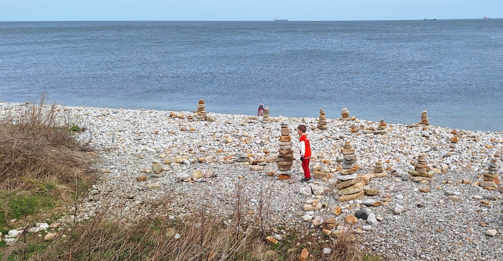 The other interesting beach at Moelfre is covered in cairns or stacks of stones. My effort was just about knee high, but there were some very tall stacks here.