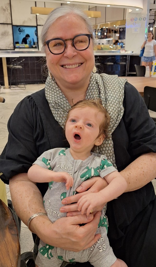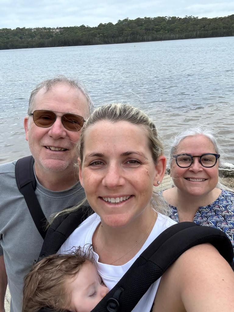 Helen drove us to Narrabeen for the hike postponed from yesterday. Before walking around the Lagoon, we had coffee and Helen fed Keiran.
