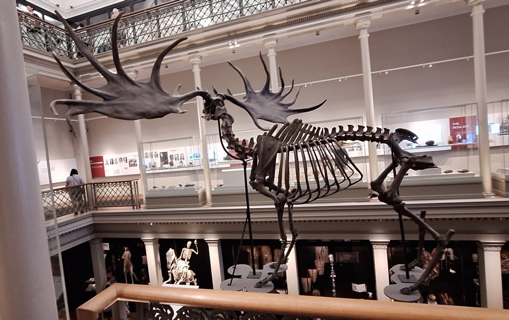 Standing about two metres tall, with antlers spanning more than three metres, the Irish Elk was one of the most impressive megafauna of the Pleistocene epoch. Unlike many other megafauna, it survived the Ice Age but became extinct, probably due to habitat loss, around 7700 years ago.