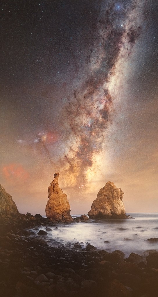 The set of sea stacks pictured are a prominent feature of this local spot, sitting perfectly to frame the rising Milky Way arm. This piece was my (Kavan’s) second attempt at shooting here, armed with a few extra years’ worth of experience. I still love this spot, Otago, Aotearoa New Zealand.