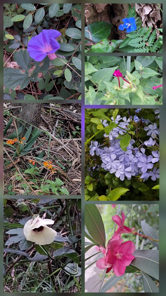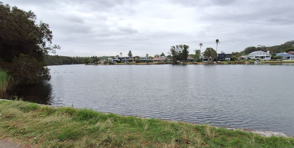 We weren’t alone, we passed by several dog-walkers, plenty of runners and a few other people walking. There were just a few birds in the water, including black swans. We saw one fish jump. But most noticeable on the way around the lagoon was realising that the vegetation was mostly green, with just the odd splash of colour, mainly small, almost alpine flowers.