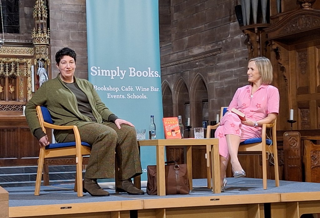 One of my current favourite writers is Joanne Harris: she wrote, Chocolat and its sequels. A year ago, a prequel came out too, Vianne. To mark publication of the paperback edition, she is touring the bookshops of Britain. So of course, I had to go and meet her at Simply Books in Bramhall. She makes writing a novel look so easy. She was interviewed by Kay Crewdson who I’ve only known before from the BBC’s North West Tonight programme, when she tells us how bad the weather’s going to be.