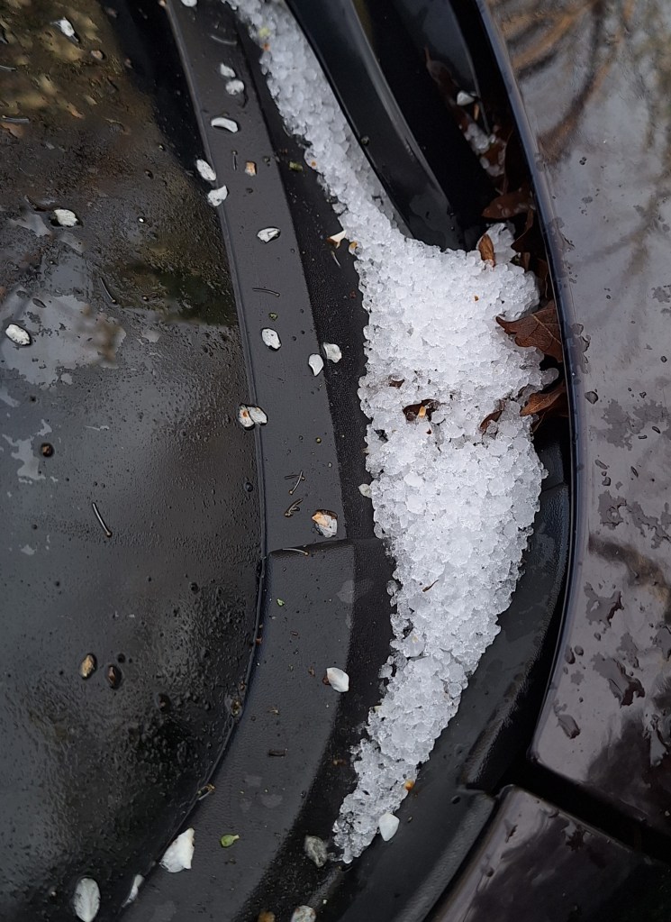 A pile of hailstones on the car. It didn’t feel that cold outside, but as Liesel later commented, we often do have a bout of bad weather around my birthday.