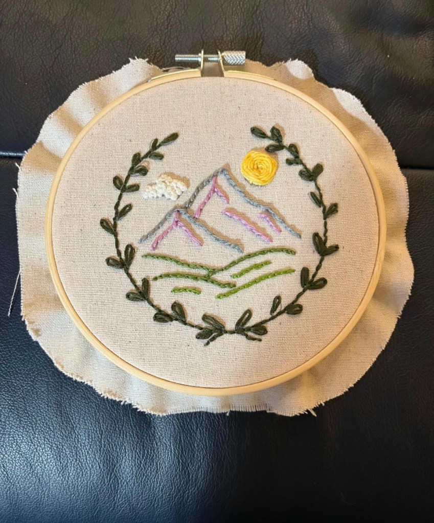 In other overseas news, Liesel and Monica attended their first embroidery class. Liesel learned five new stitches and achieved this work of art. Not bad for a first go.