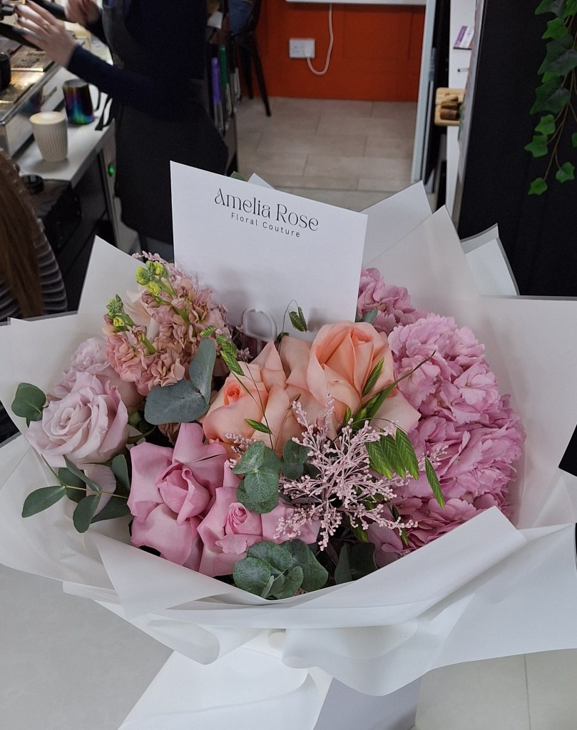 In the coffee shop, I was disappointed to find that this gorgeous bouquet was not actually for me.