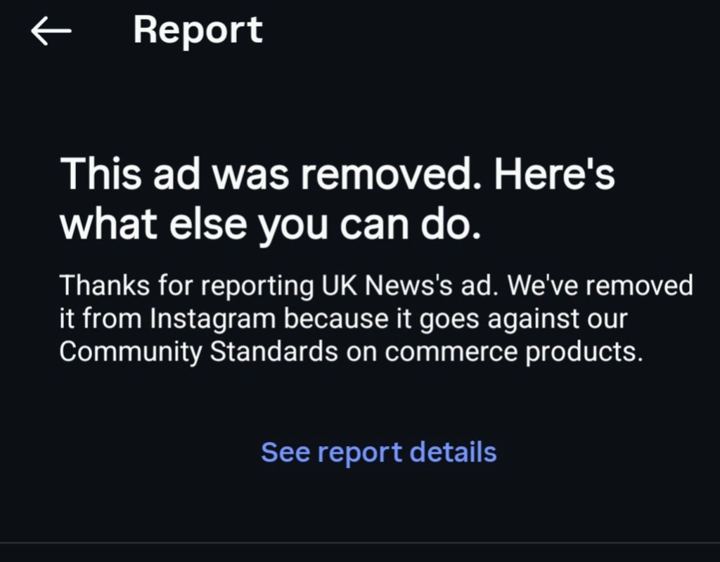 Over the years, I’ve reported several adverts and posts on various social media sites. Usually, the response from Meta or whatever is that it’s OK, it follows the rules and no action will be taken. And I’ve thought, in that case, your rules need to be changed then. Well, this week, I succeeded in getting an ad removed.