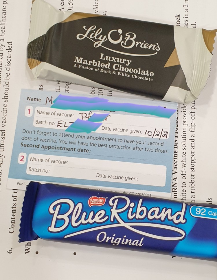 And, as a bonus, while resting afterwards, a beautiful nurse brought over the trolley for me, from which I selected a KitKat and a packet of Mini Cheddars. They’re still not offering hot beverages but I was delighted with my haul. I’ll be back!